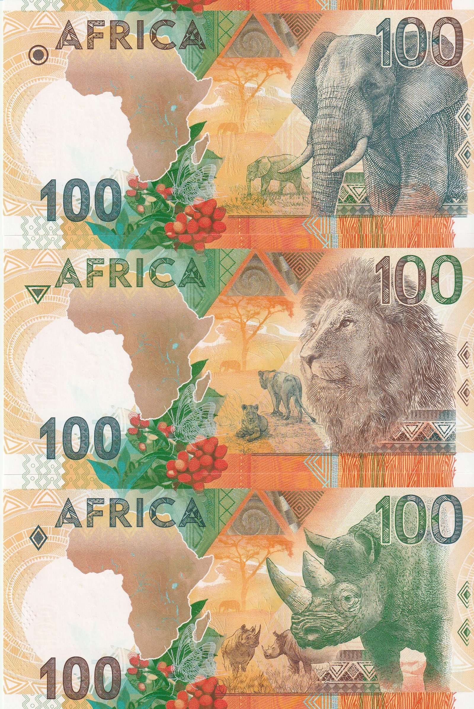 Africa 3 Valores Fauna Africana Elefante-León-Rinoceronte, UNC