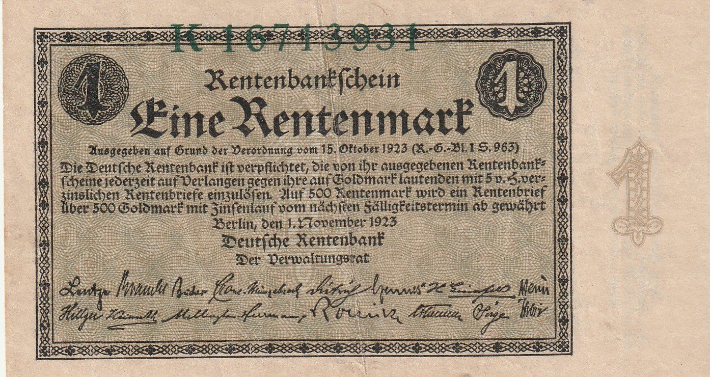 Alemania GER-P-161, 1 Mark, 1923. Nº K-16713931, Look Scand, Very Fine+