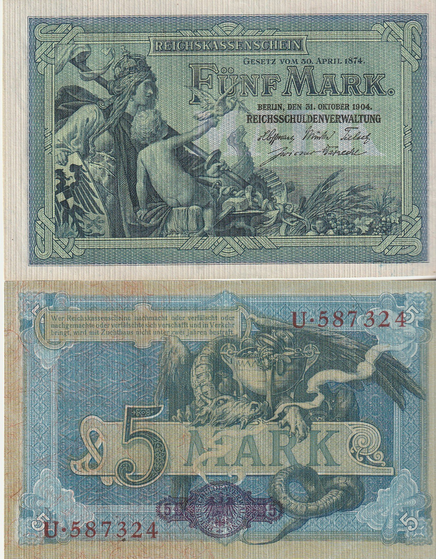 Alemania GER-P-8a, 5 Mark, 1904, Serie 6 cifras, Looks Scand, UNC