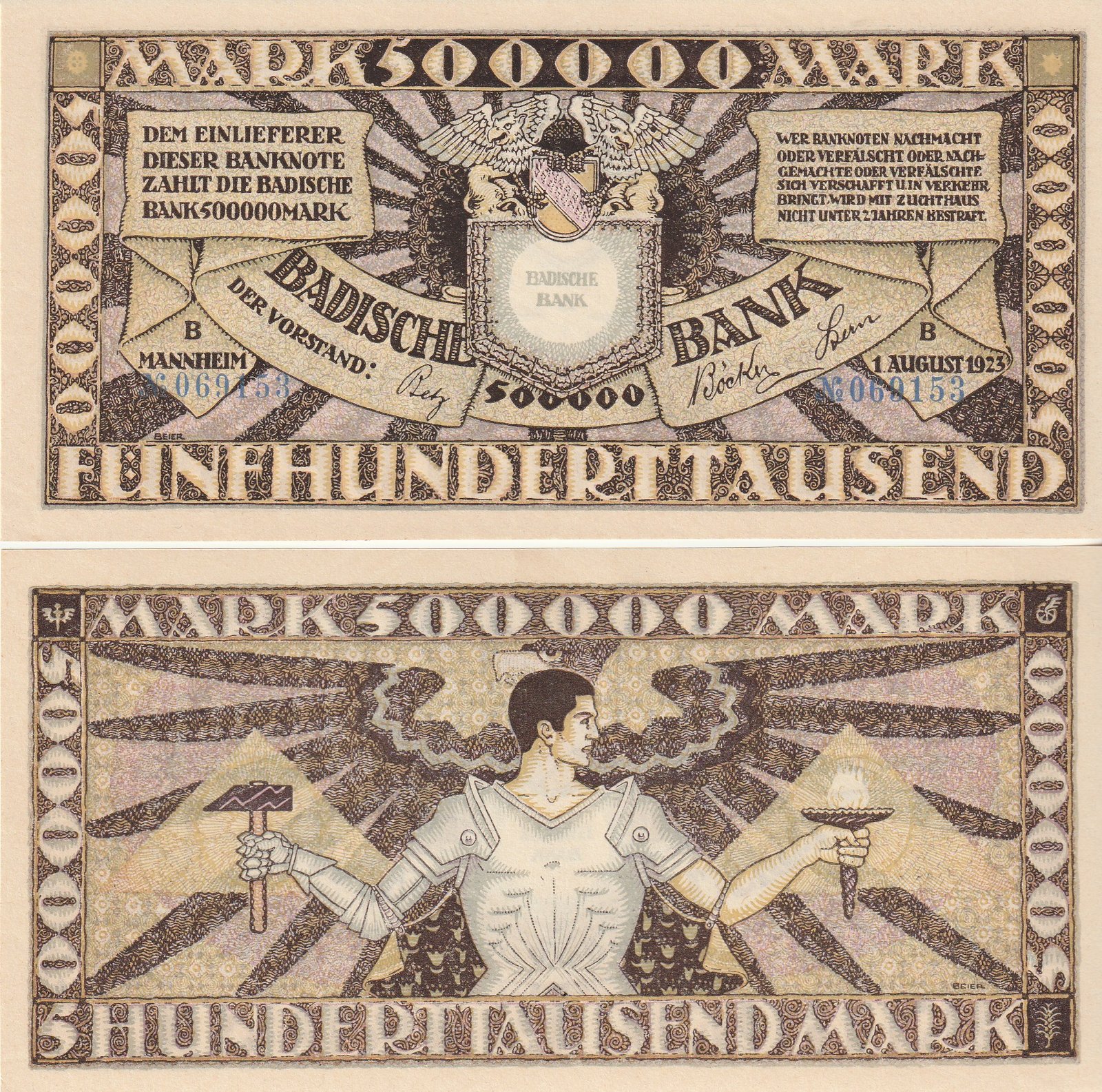 Alemania GER-P-BANCO BADISCHE 500000 MARCOS MANNHEIM 1923, UNC