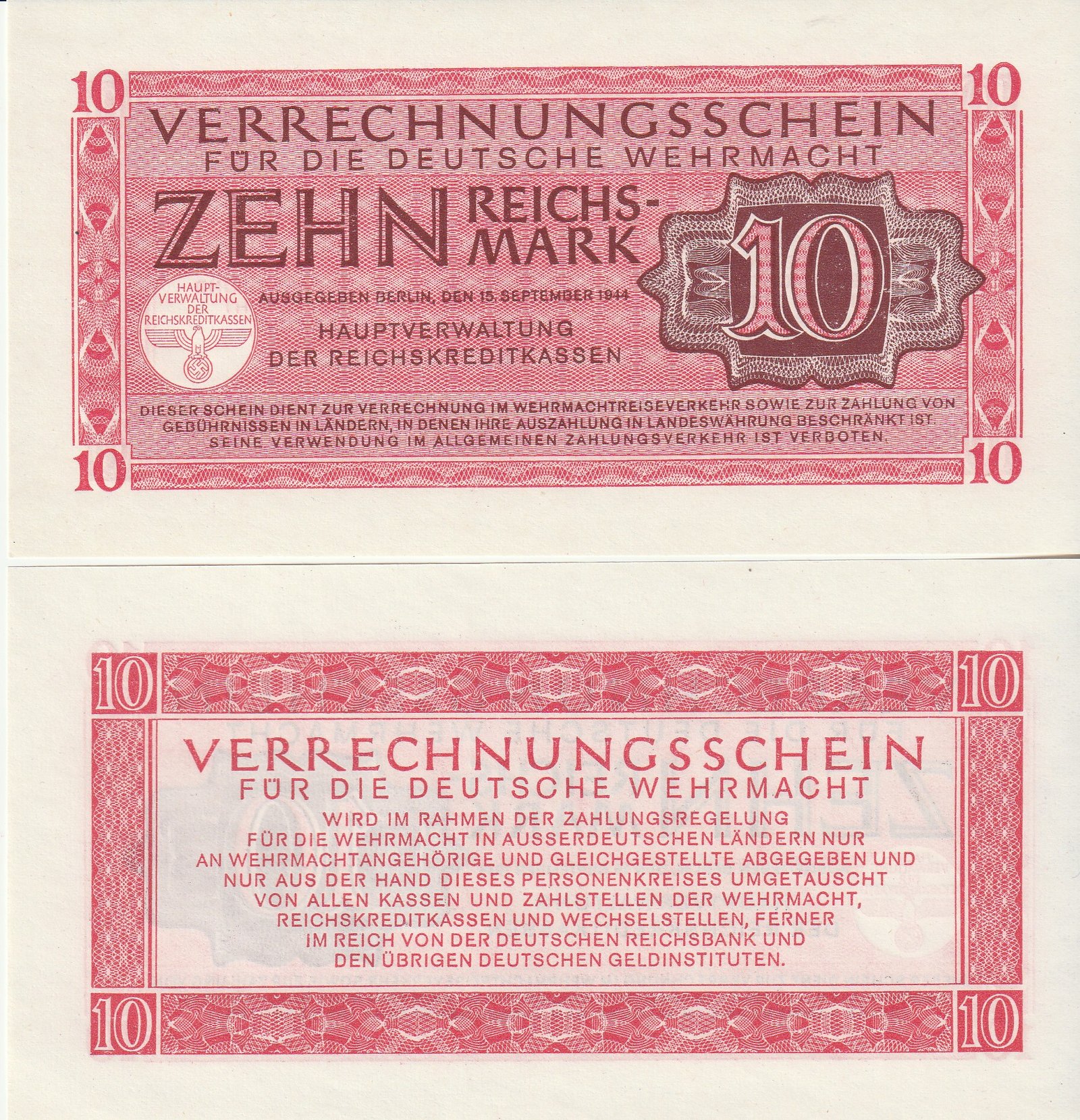 Alemania GER-P-M40, 10 Reichsmark, 1942, UNC