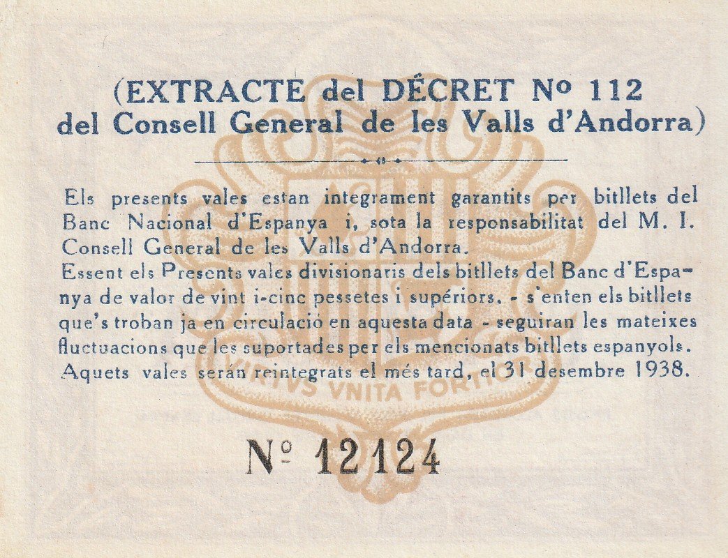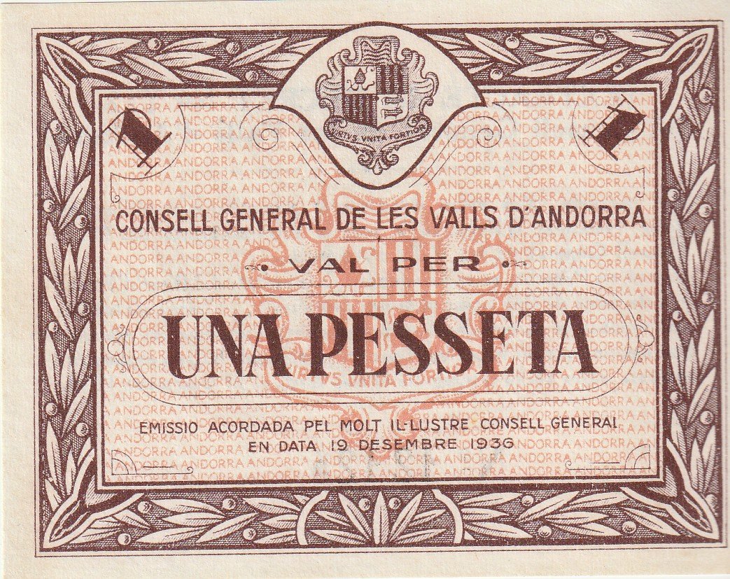 Andorra ADR-P-6, 1 Pta., 1936, Look Scand, Nº 12124, UNC