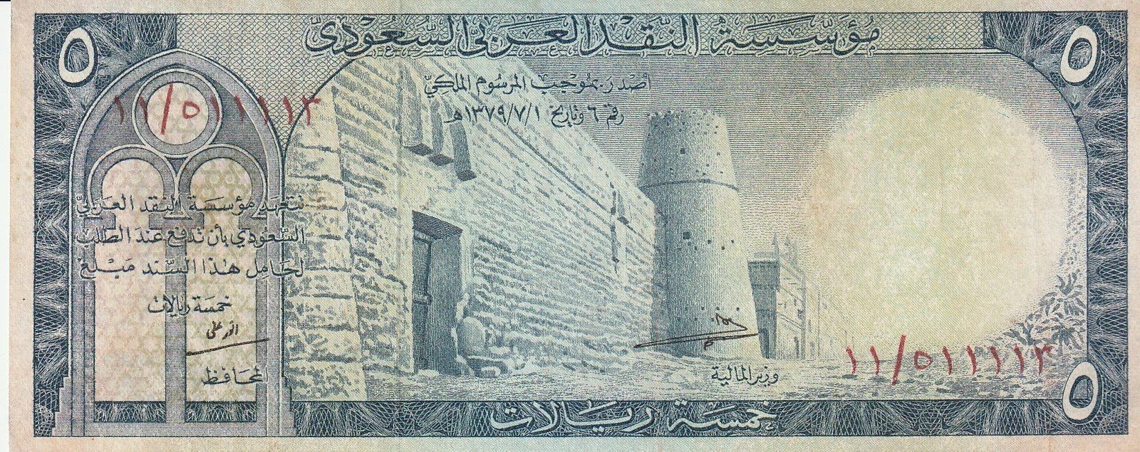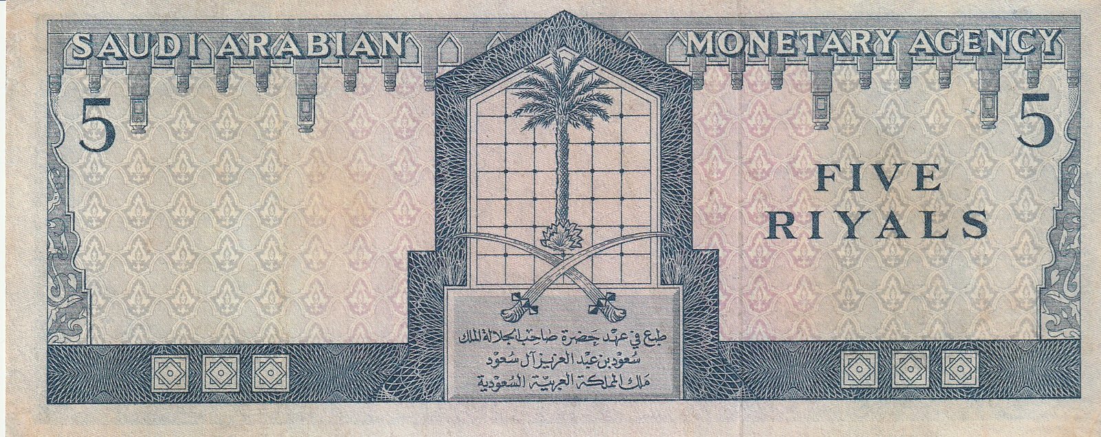 Arabia Saudí SAR-P-7b, 5 Riyals, 1961, Look Scand, XF