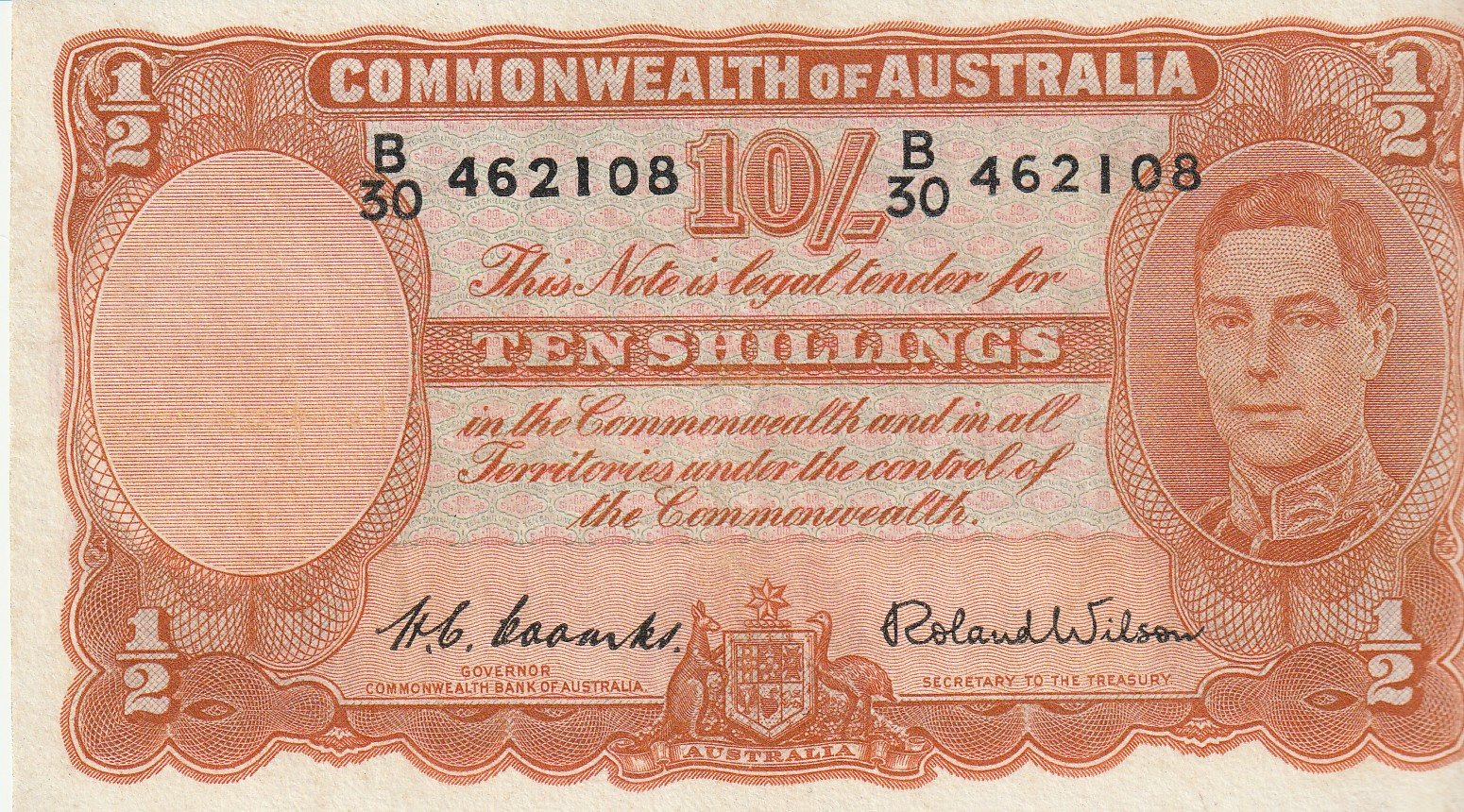 Australia ATL-P-25d, 10 Shillings, Nº.- B/30-462108, 1938/40, XF+
