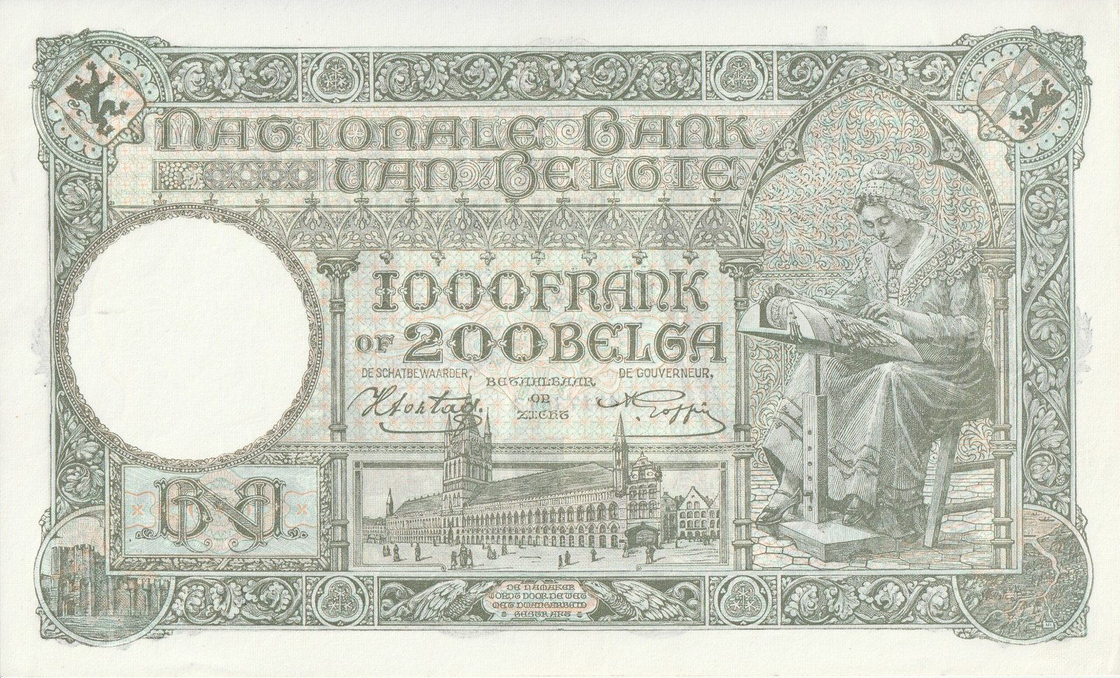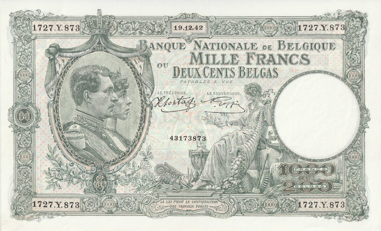 Belgica BEL-P-110(2), 1.000 Fcos./200 Belgas, 19/12/1942, Nº 43173873, Look Scand, aUNC