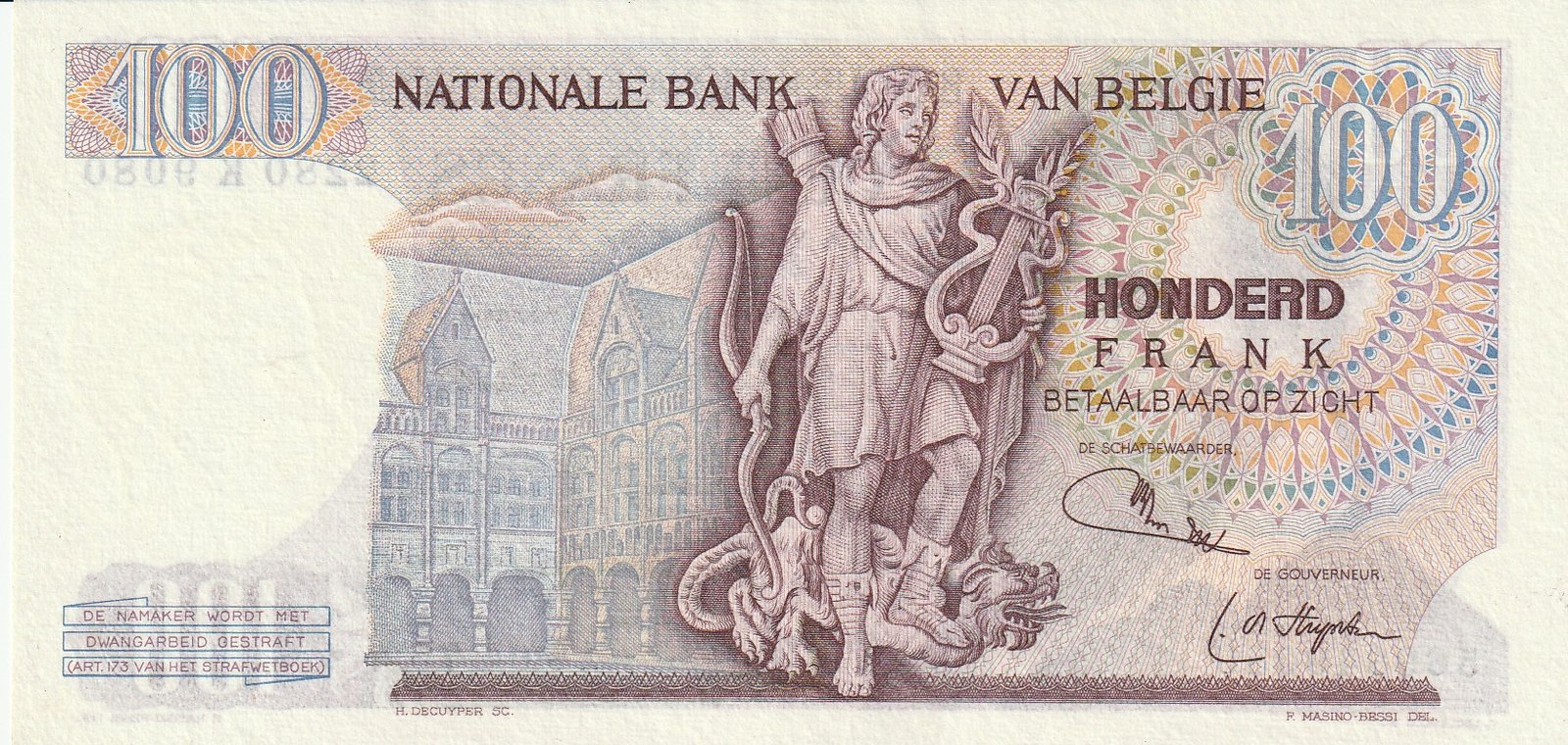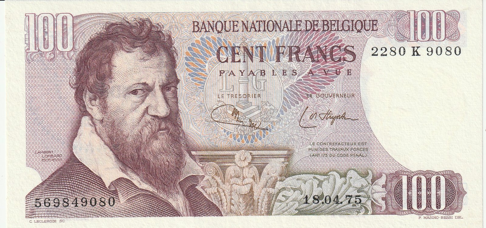 Belgica BEL-P-134b(3), 100 Fcos., 18-Abril-1975, Nº.- 569849080, Look Scand, UNC