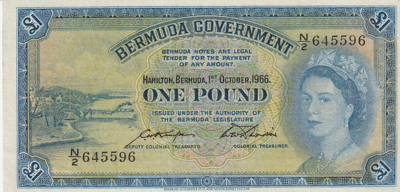 Bermuda BMD-P-20d, 1 Pound, Nº.- N/2-645596, 1-Oct-1966, Look Scand, VF++