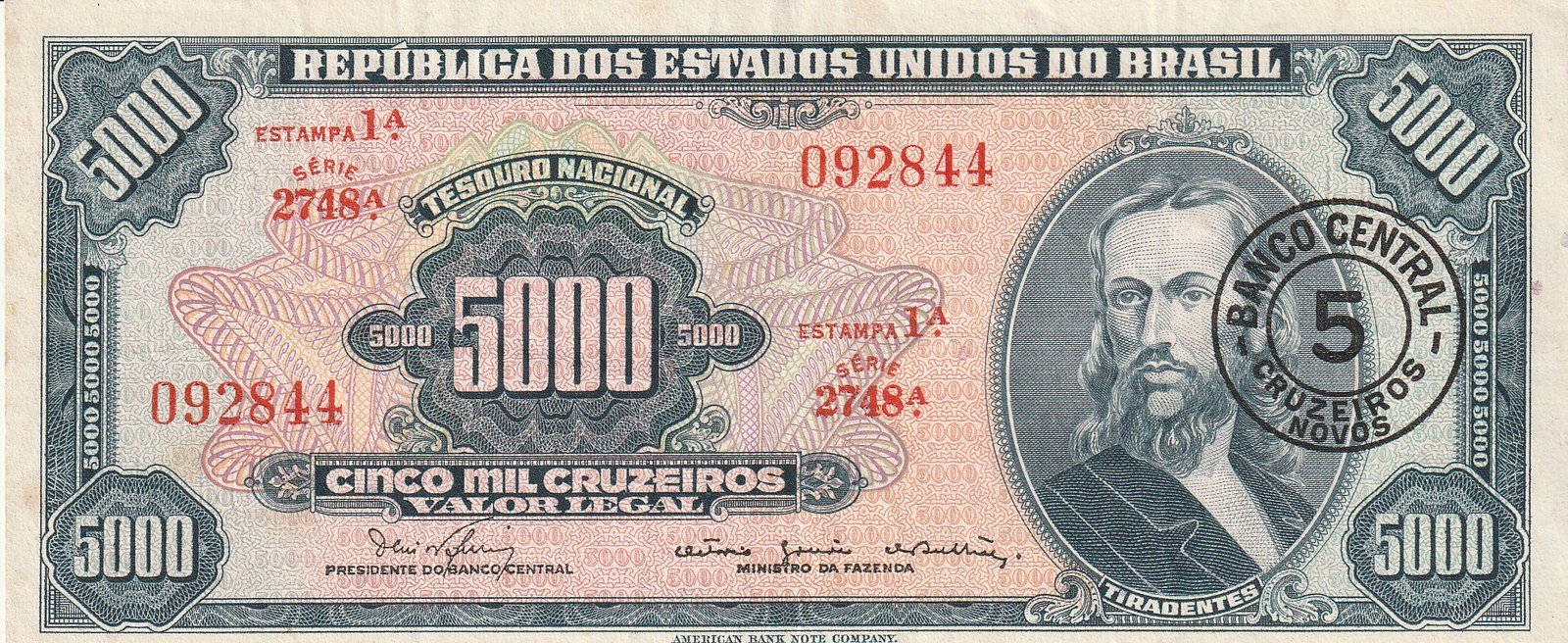 Brasil BRA-P-188b, 5000/5 Ctvo., ND-1967, Nº 092844, Look Scand, XF-
