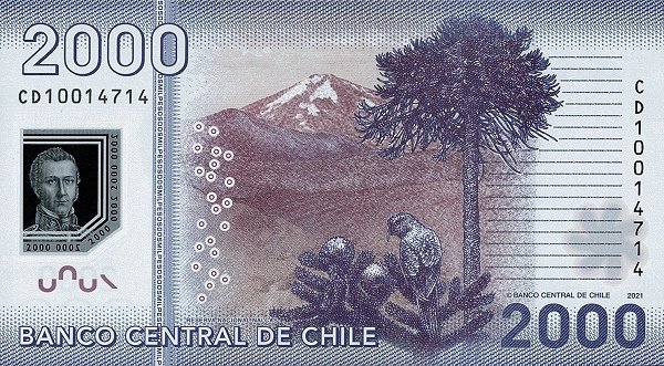 Chile CHL-P-162e(21), 2.000 Pesos, 2021, Manuel Rodríguez, Polímero, UNC