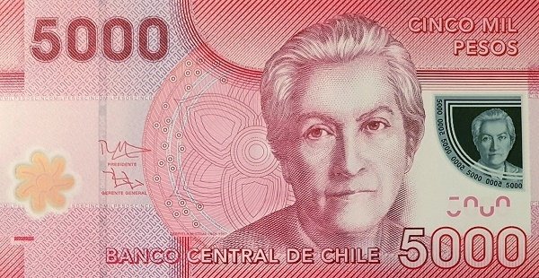Chile CHL-P-163f(15), 5.000 Pesos, 2015, Gabriela Mistral, Polímero, UNC