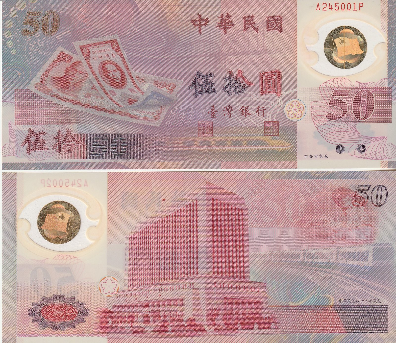 China-Taiwan CHI-P-1990, 50 Yuan, 1999, Polímero, 50th Anniversary of Taiwan 1949-1999 UNC