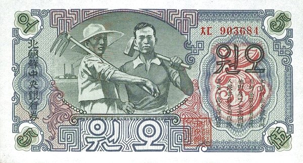 Corea del Norte NKR-P-10b, 5 Won, 1947, UNC