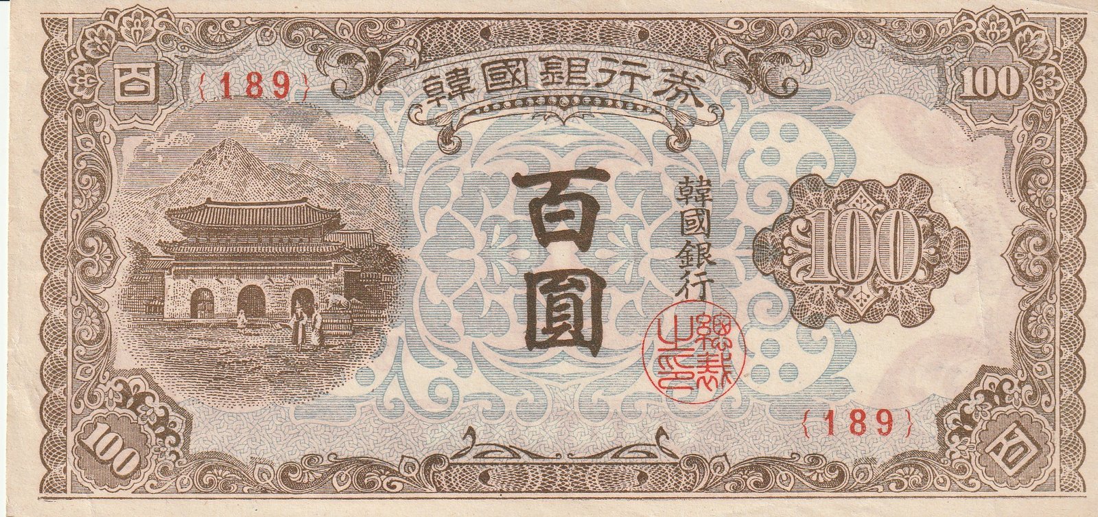 Corea del Sur KRS-P-7, 100 Won, ND-1950, Look Scand, XF
