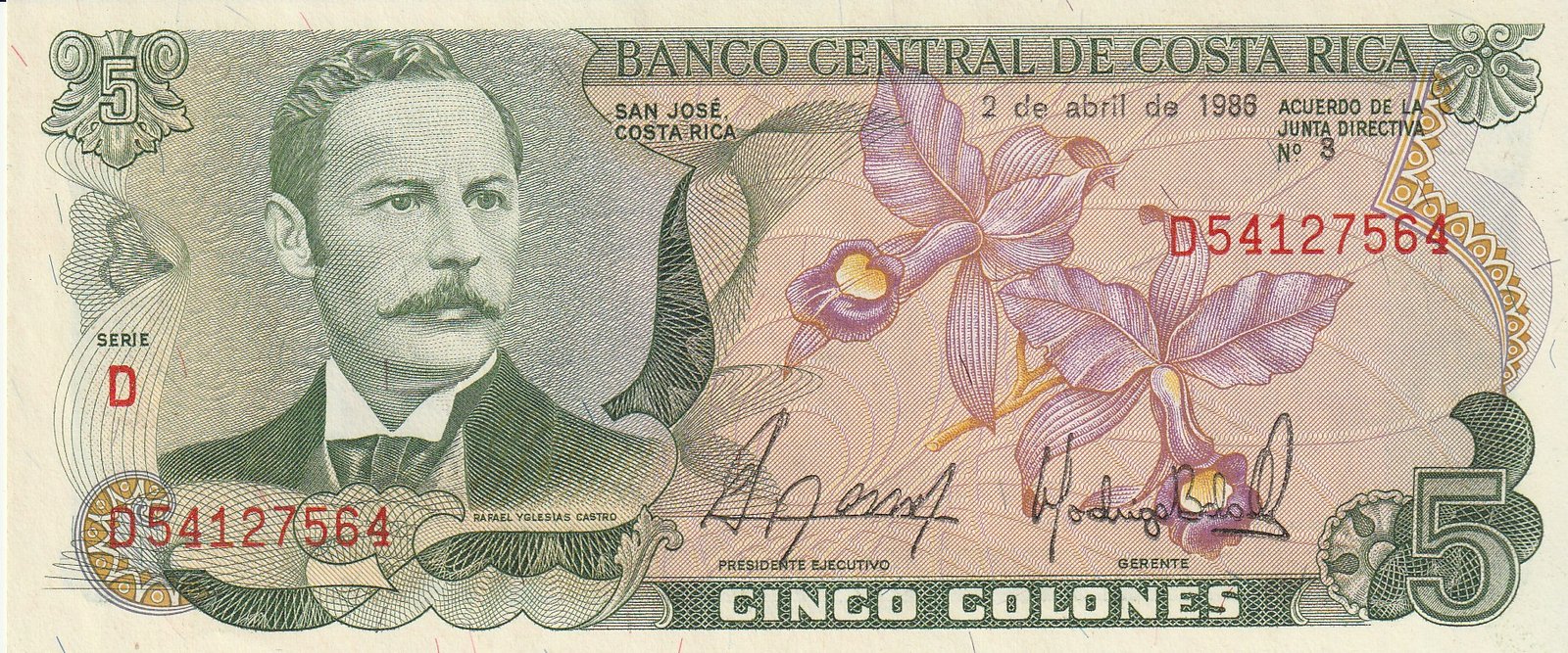 Costa Rica CTR-P-236d, 5 Colones, 1986, UNC
