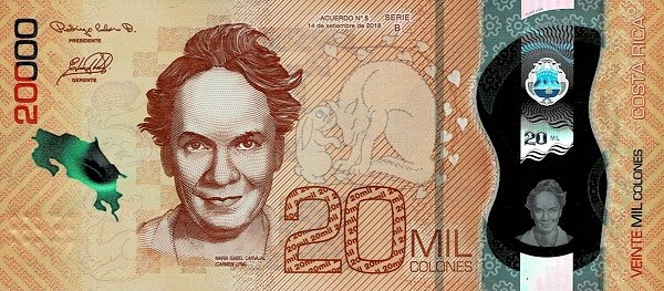 Costa Rica, CTR-P-W284, 20.000 Colones, Maria Isabel Carbajal, 14-Sept.-2018, Serie B011440392, Polímero, UNC