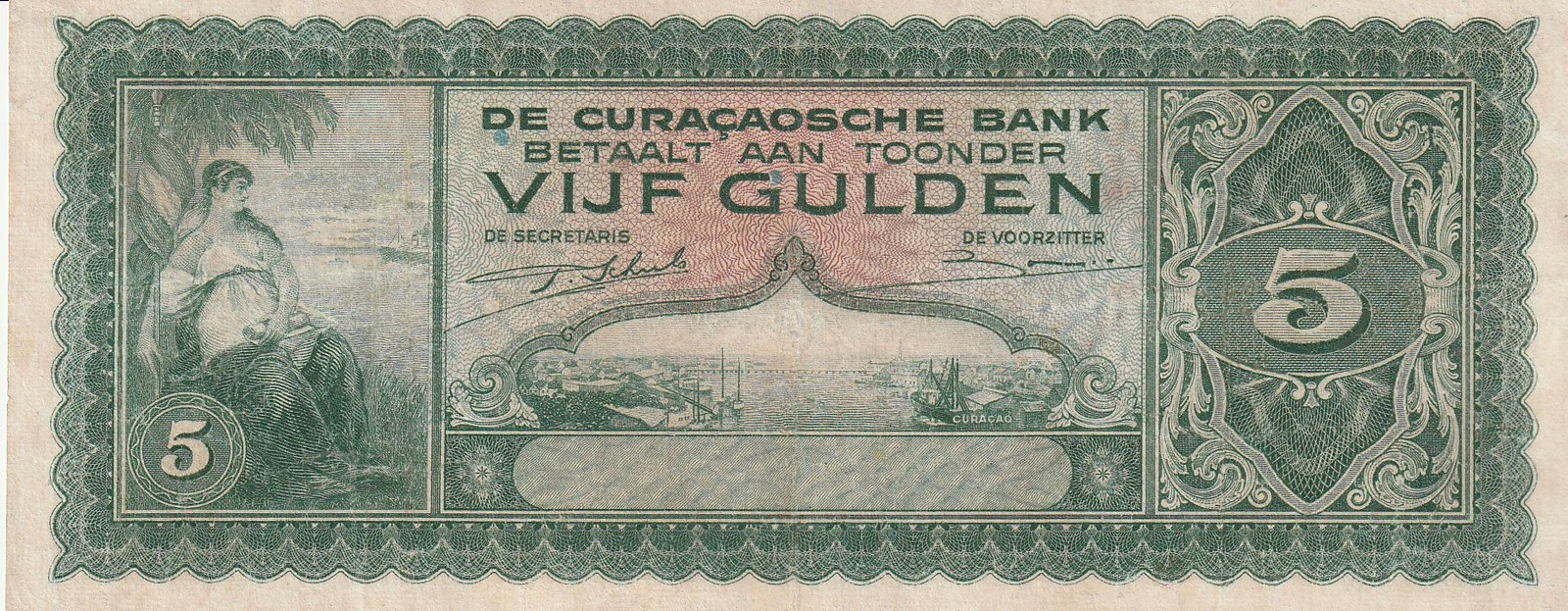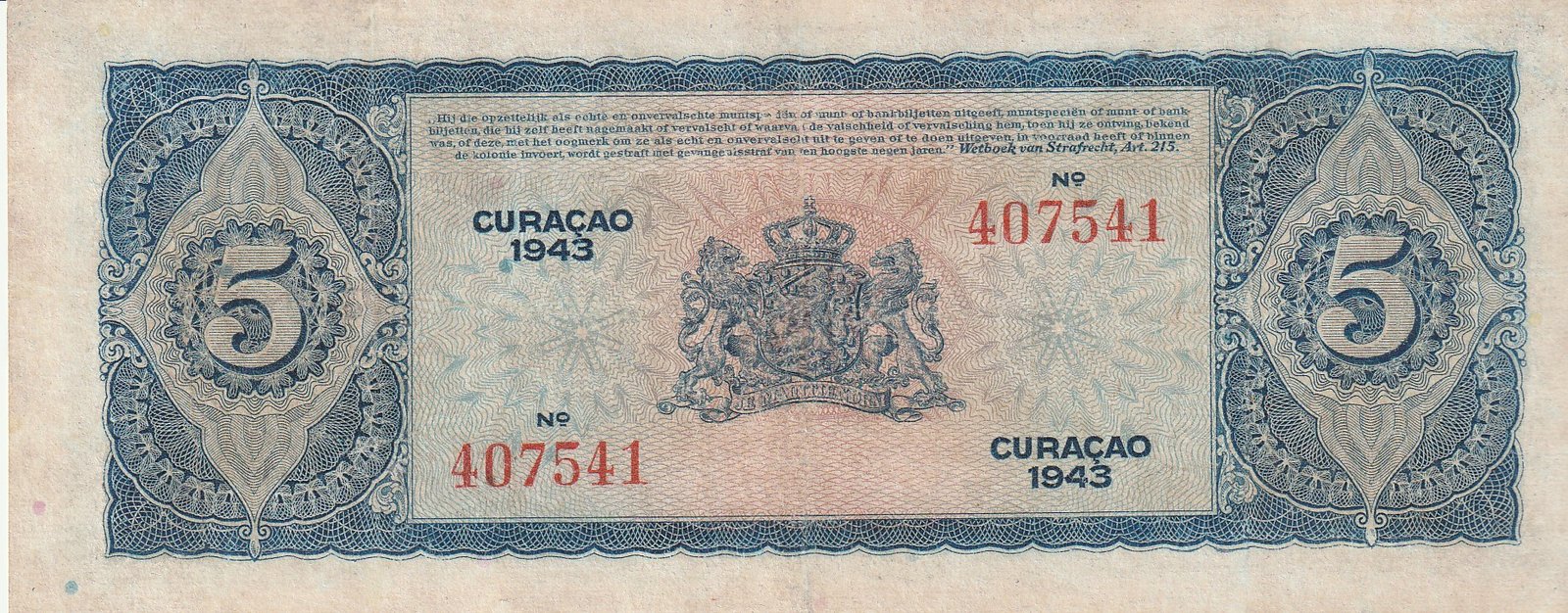 Curacao CRS-P-25, 5 Gulden, Nº 407541, 1943, Look Scand, XF