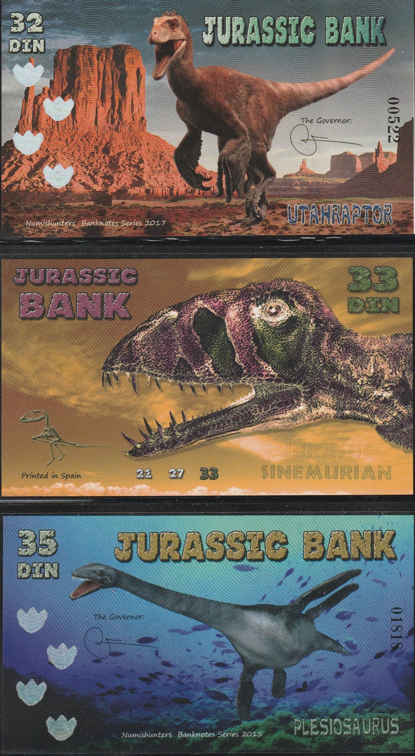EMISIÓN DINOSAURIOS, JURASSIC BANK, 10ª SERIE (32-33-35 DIN)