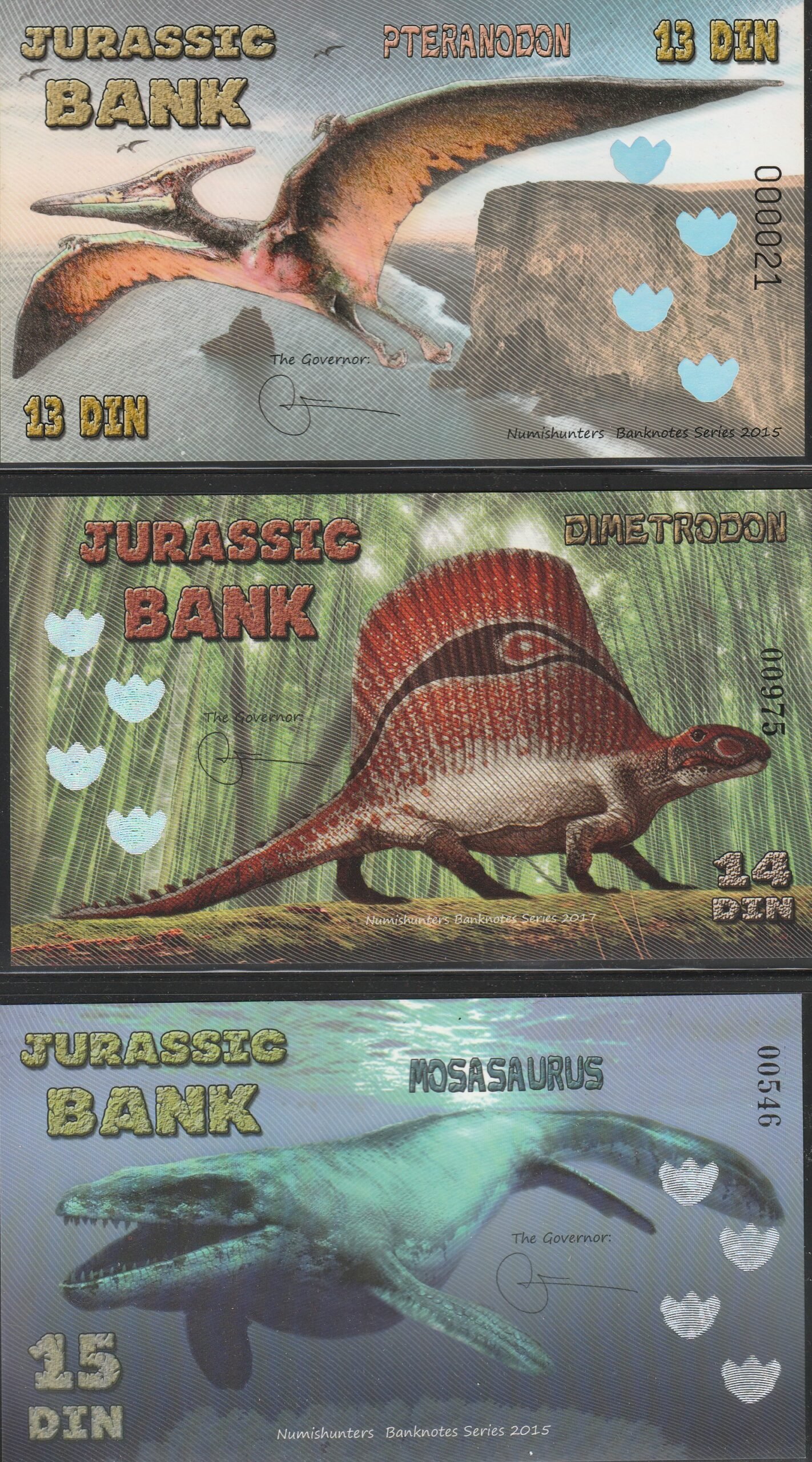 EMISIÓN DINOSAURIOS, JURASSIC BANK, 5ª SERIE (13-14-15 DIN)