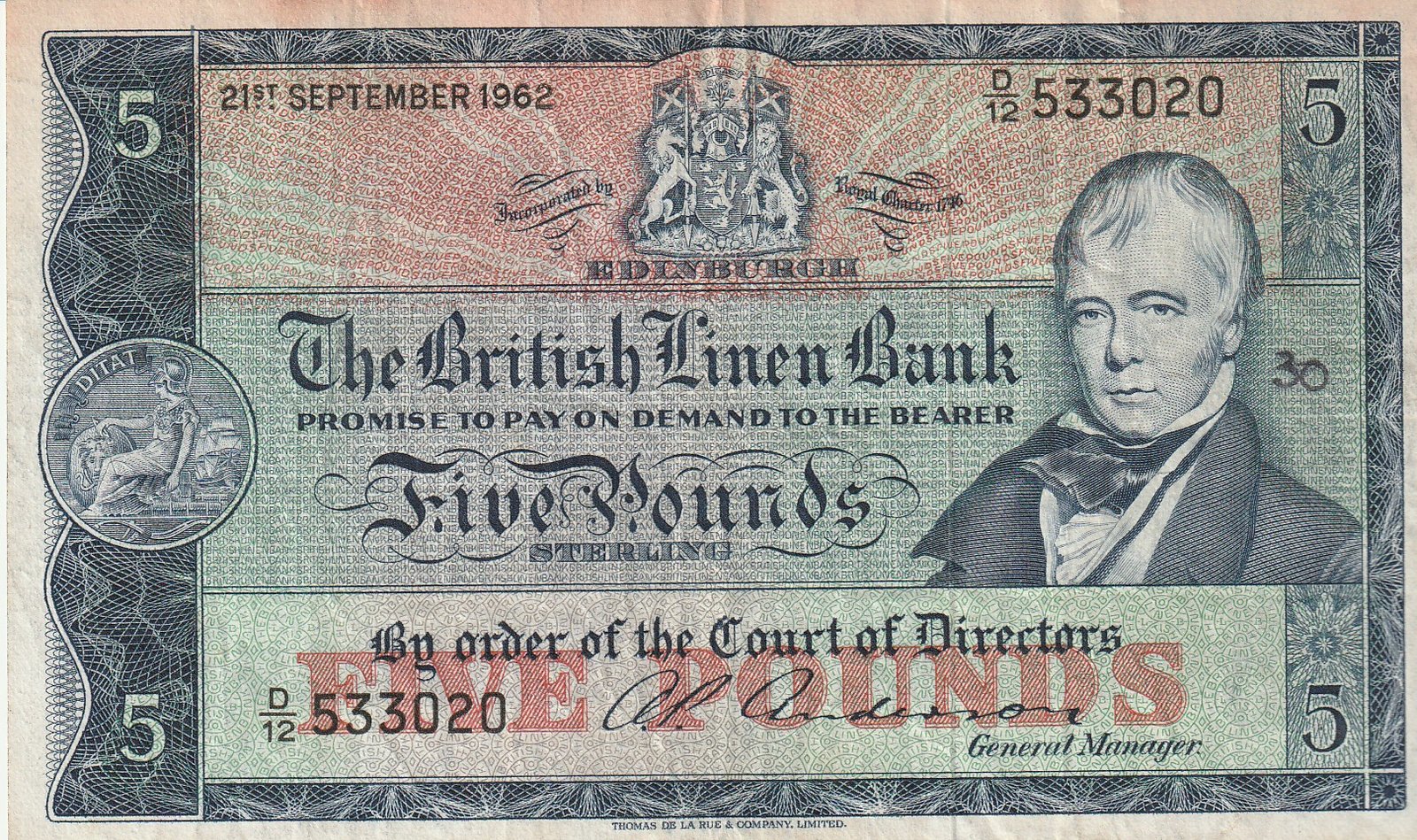 Escocia SCL-P-324b(58), 1 Pound, Agosto-1955, Nº 449901, Look Scand, aUNC