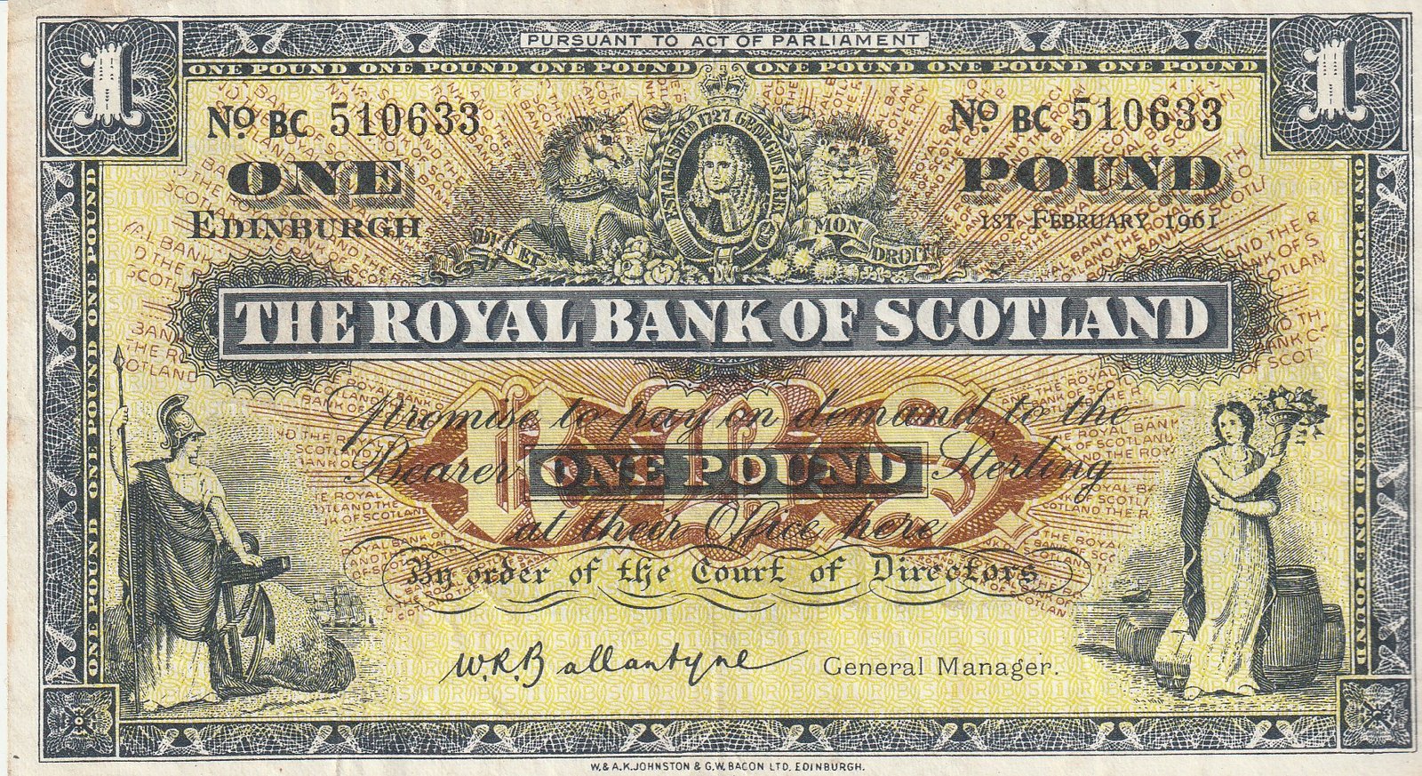 Escocia SCL-P-324b(61), 1 Pound, Febrero-1961, Nº 510633, Look Scand, XF-