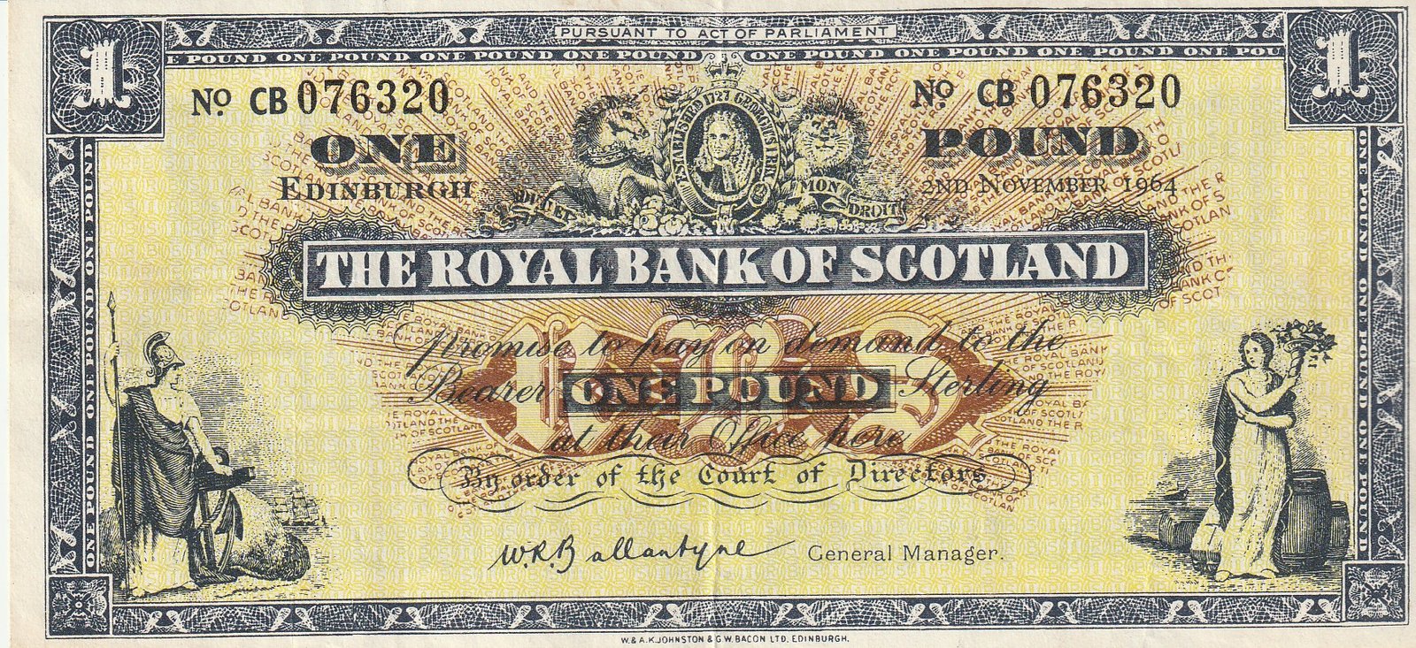 Escocia SCL-P-325a(11-64), 1 Pound, Noviembre-1964, Nº 76320, Look Scand, VF+