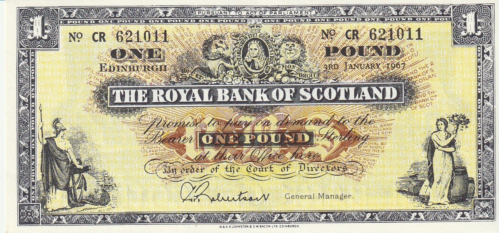 Escocia SCL-P-325b(1-67), 1 Pound, Enero-1967, Nº 621011, Look Scand, XF++