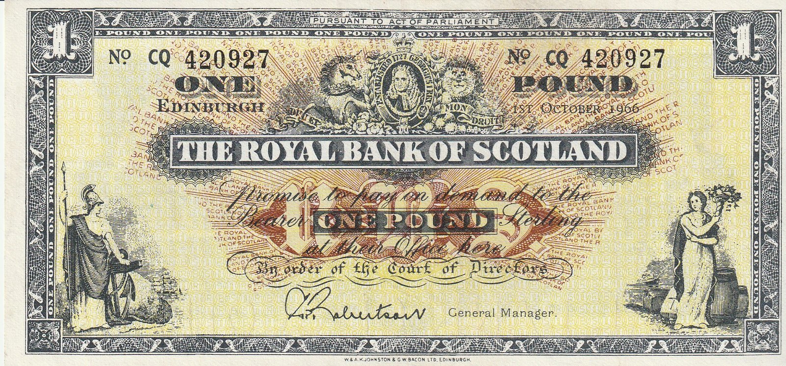 Escocia SCL-P-325b(10-66), 1 Pound, Octubre-1966, Nº 420927, Look Scand, XF