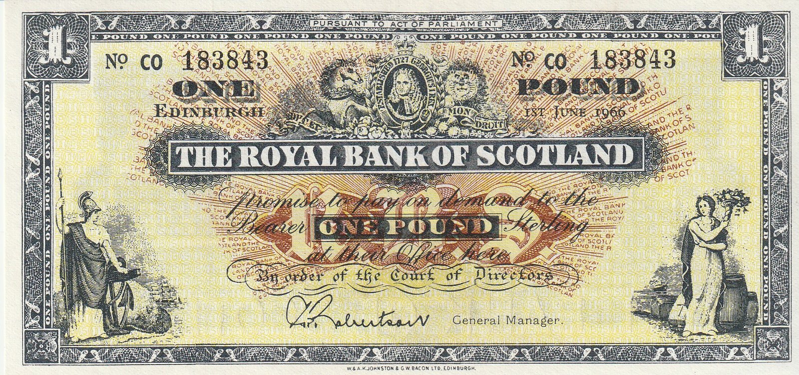 Escocia SCL-P-325b(6-66), 1 Pound, Junio-1966, Nº 183843, Look Scand, XF