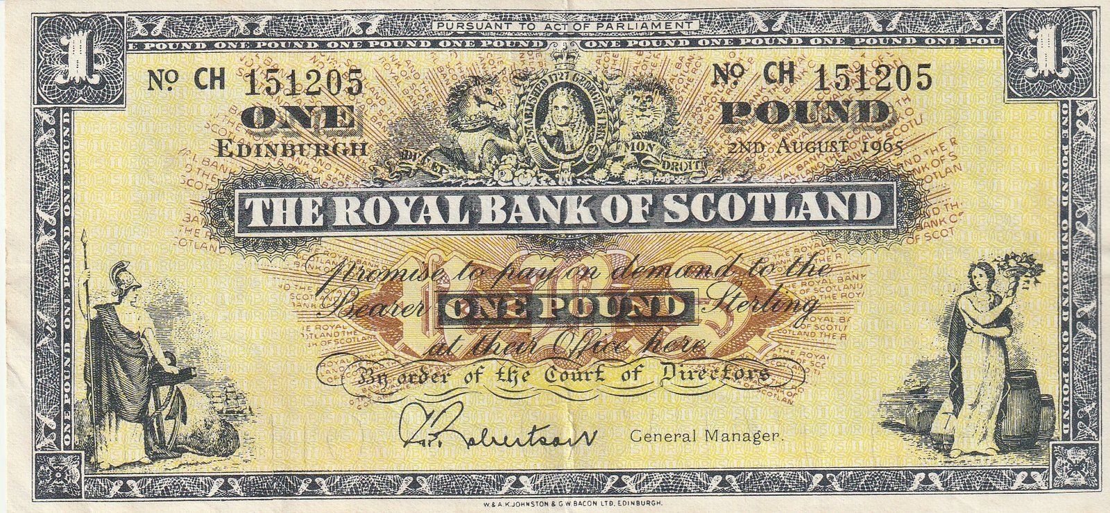 Escocia SCL-P-325b(65), 1 Pound, Agosto-1965, Nº 151205, Look Scand, VF+