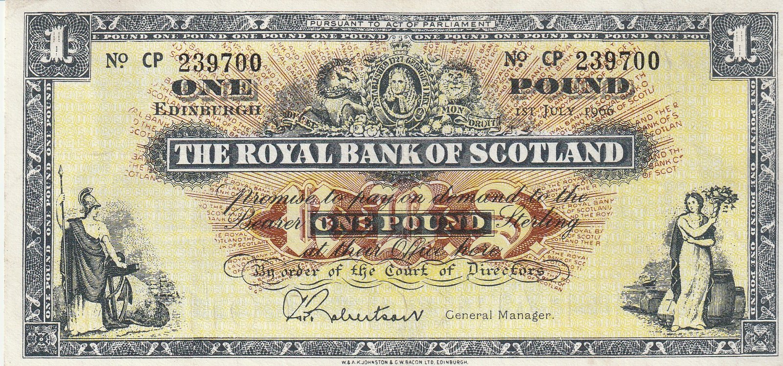 Escocia SCL-P-325b(7-66), 1 Pound, Julio-1966, Nº 239700, Look Scand, XF-