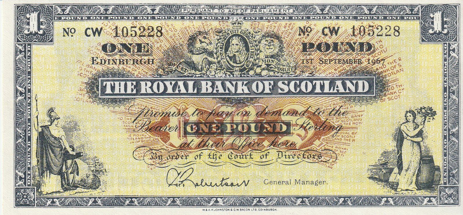 Escocia SCL-P-325b(9-67), 1 Pound, Septiembre-1967, Nº 105228, Look Scand, XF