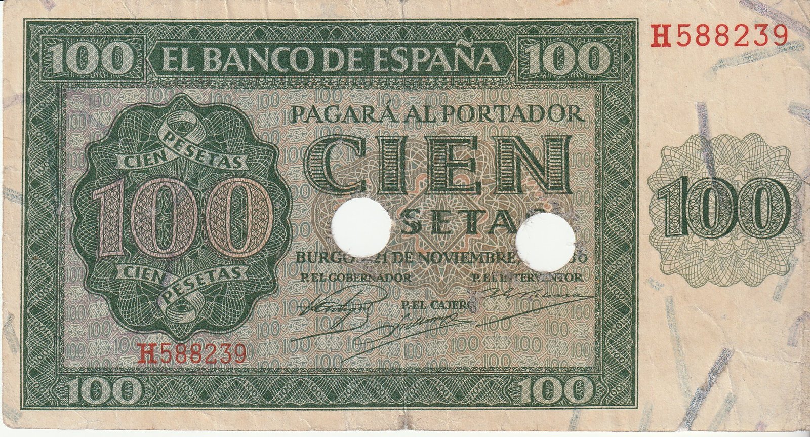 España ESP-P-101, 100 Ptas., 21-Noviembre-1936, Inutilizado, Look Scand, Very Fine