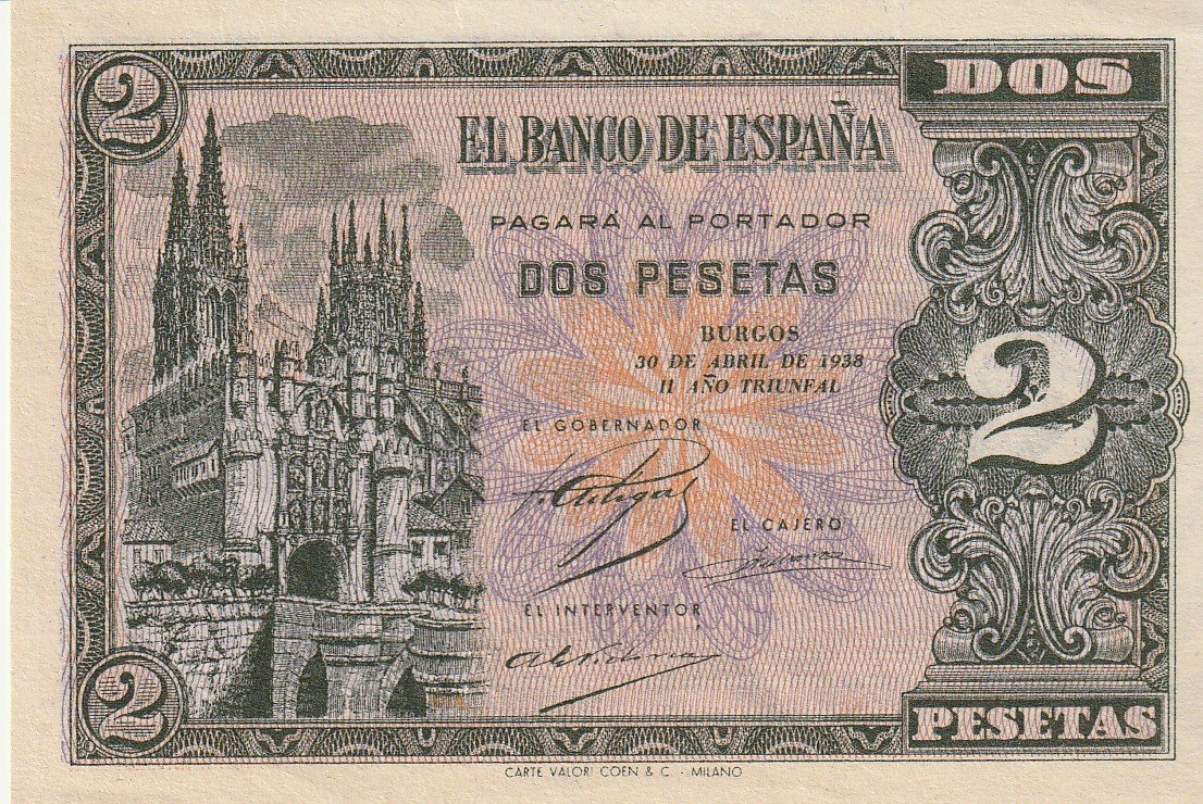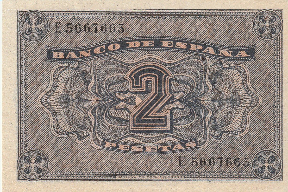 España ESP-P-109 (Guerra-449), 2 Ptas, Nº E5667665, Look Scand, aUNC