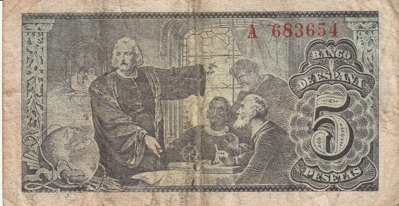 España ESP-P-127, 5 Ptas., 1943, Isabel II, Nº A683654, Look Scand, MBC
