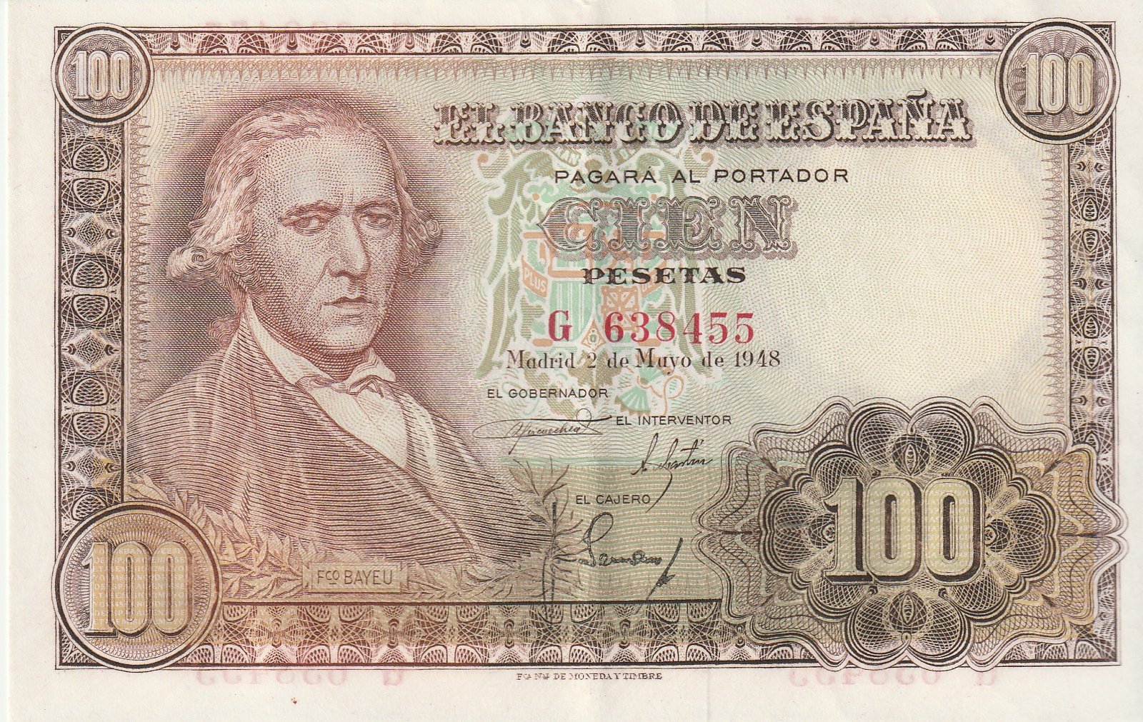 España ESP-P-137, 100 Ptas., NºG-638455, 2-Mayo.1948, Look Scand, UNC