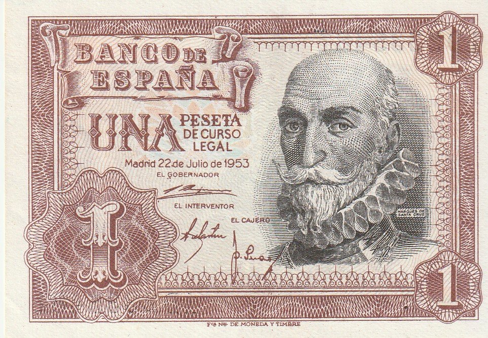 España ESP-P-144, 1 Ptas., 22-Julio-1953, Marqués de Santa Cruz, Sin Serie Nº 0290198, Look Scand, Very Fine