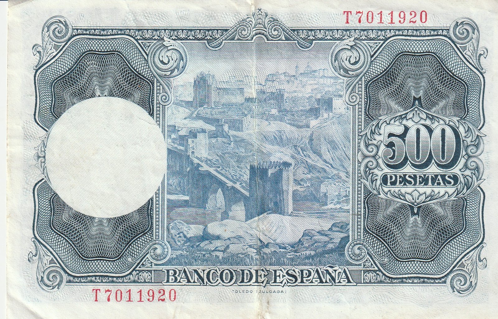 España ESP-P-148, 500 Ptas., 1954, Ignacio Zuluaga, Nº T-7011920, Look Scand, VF++