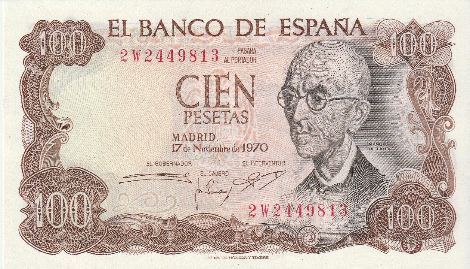España ESP-P-152(7W), 100 Ptas., Manuel de Falla, Serie 7W, 17-11-1970, UNC