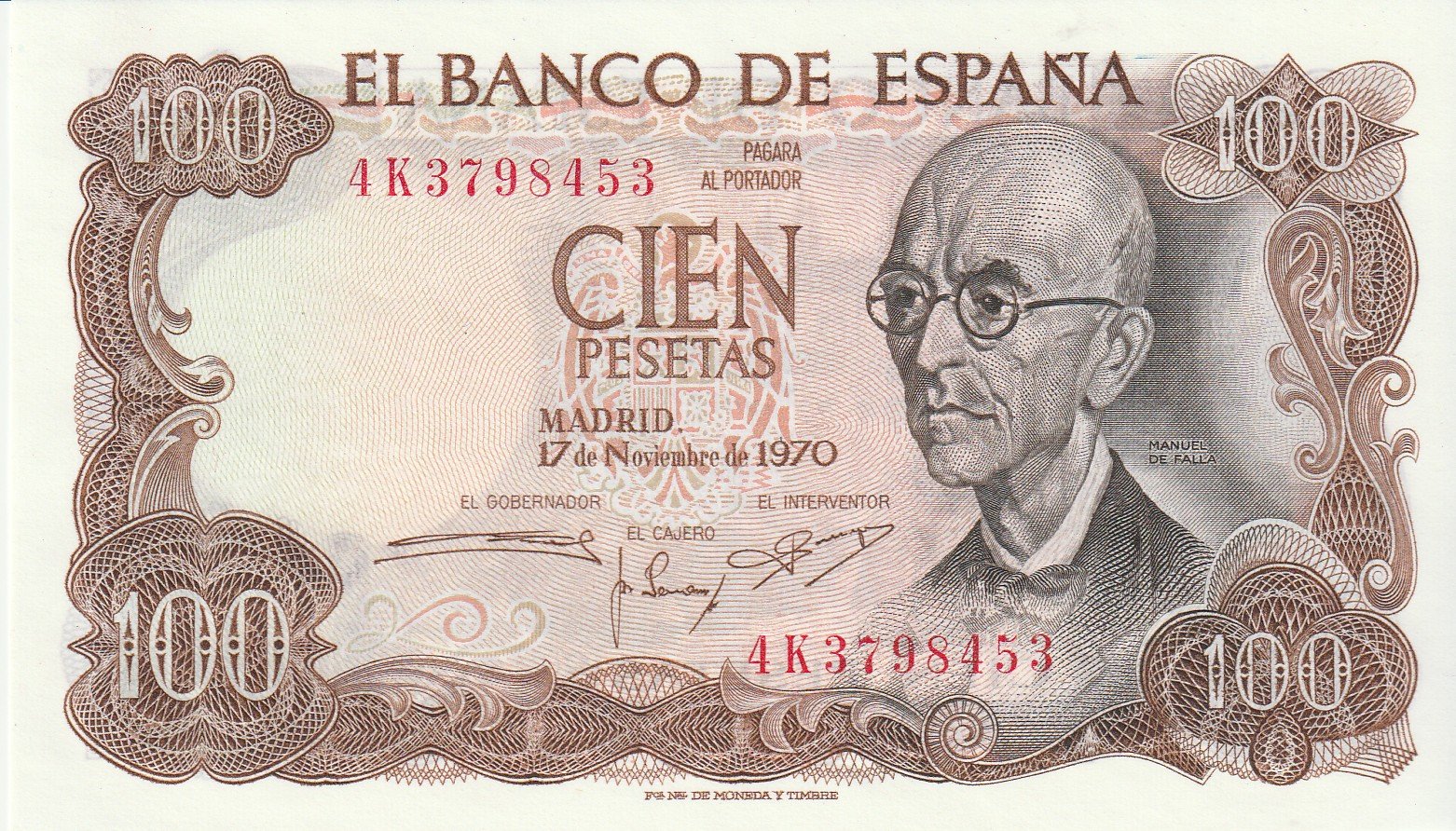 España ESP-P-152(4K), 100 Ptas., Manuel de Falla, Serie 4K, 17-11-1970, UNC
