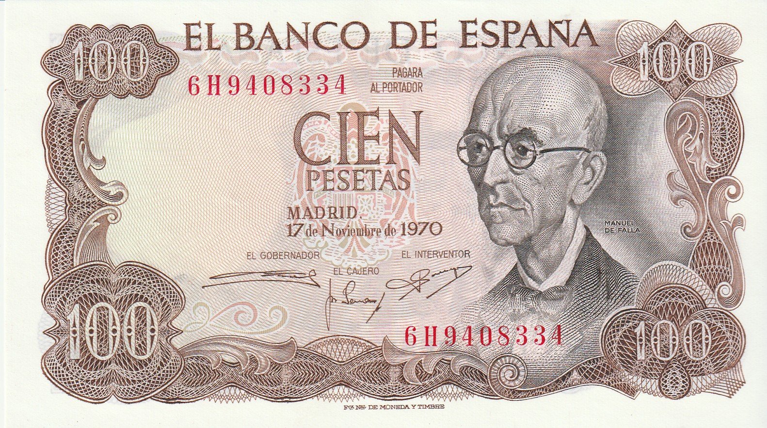 España ESP-P-152(6H), 100 Ptas., Manuel de Falla, Serie 6H, 17-11-1970, UNC