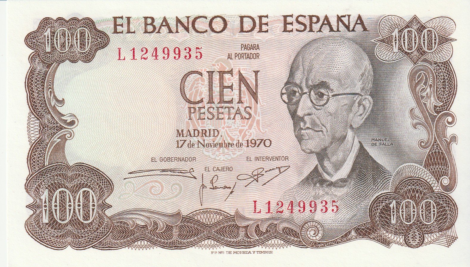 España ESP-P-152(L), 100 Ptas., Manuel de Falla, Serie L, 17-11-1970, UNC