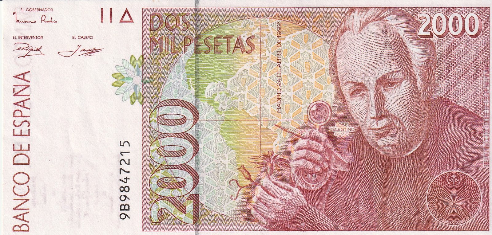 España ESP-P-164(9B), 2.000 Ptas., Celestino Mutis Serie Sustitución, Nº 9B-9847215, Look Scand, XF
