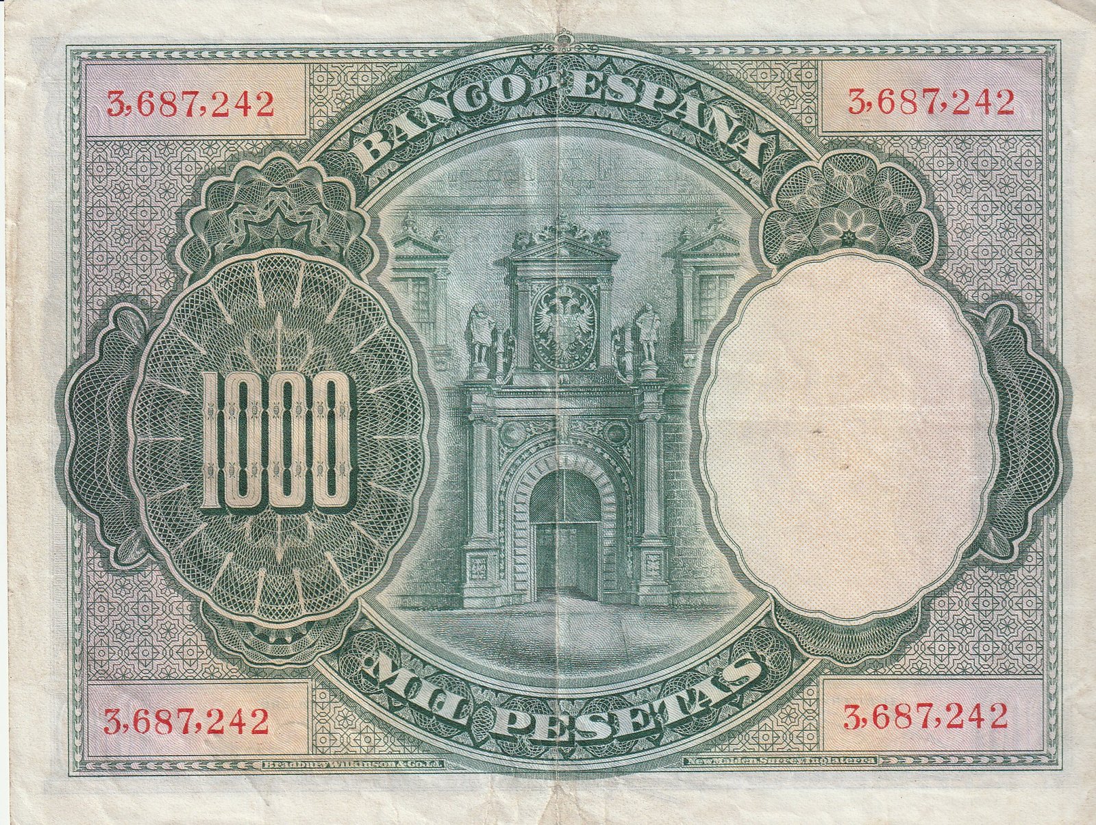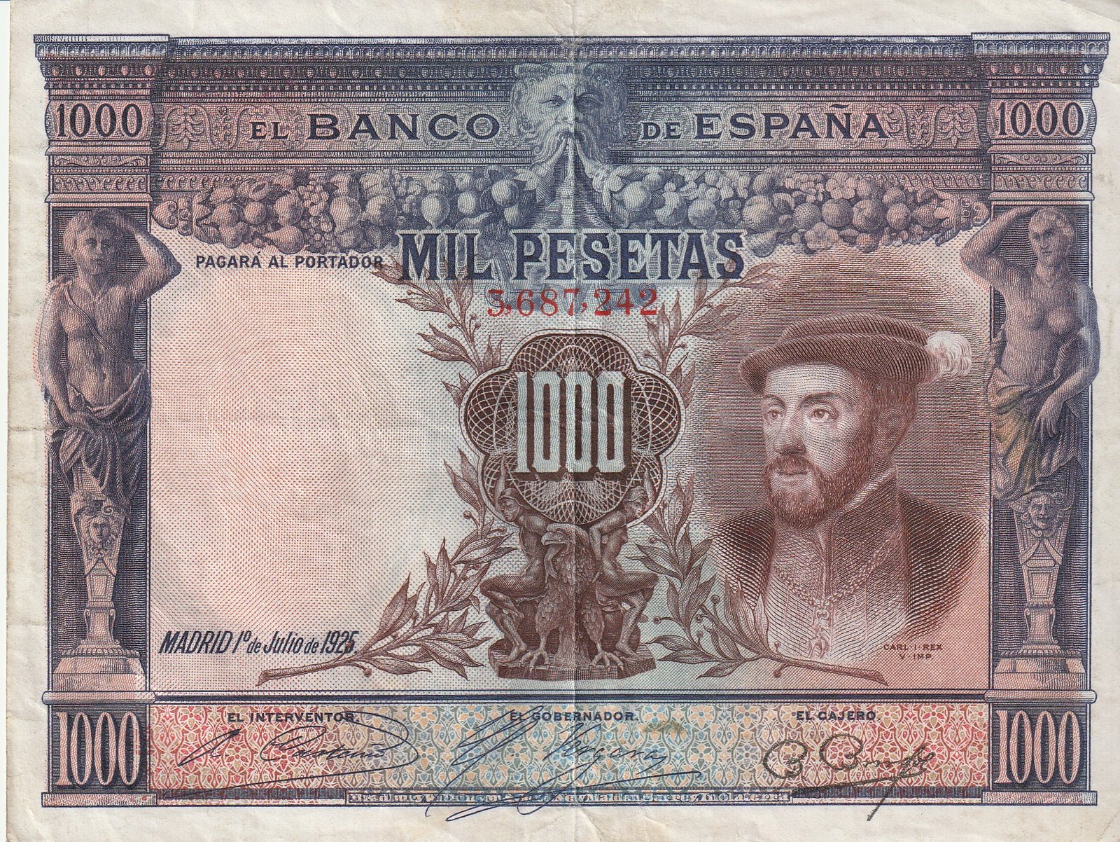 España ESP-P-70c, 1.000 Pta., 1925, Nº 3687242, Look Scand, VF