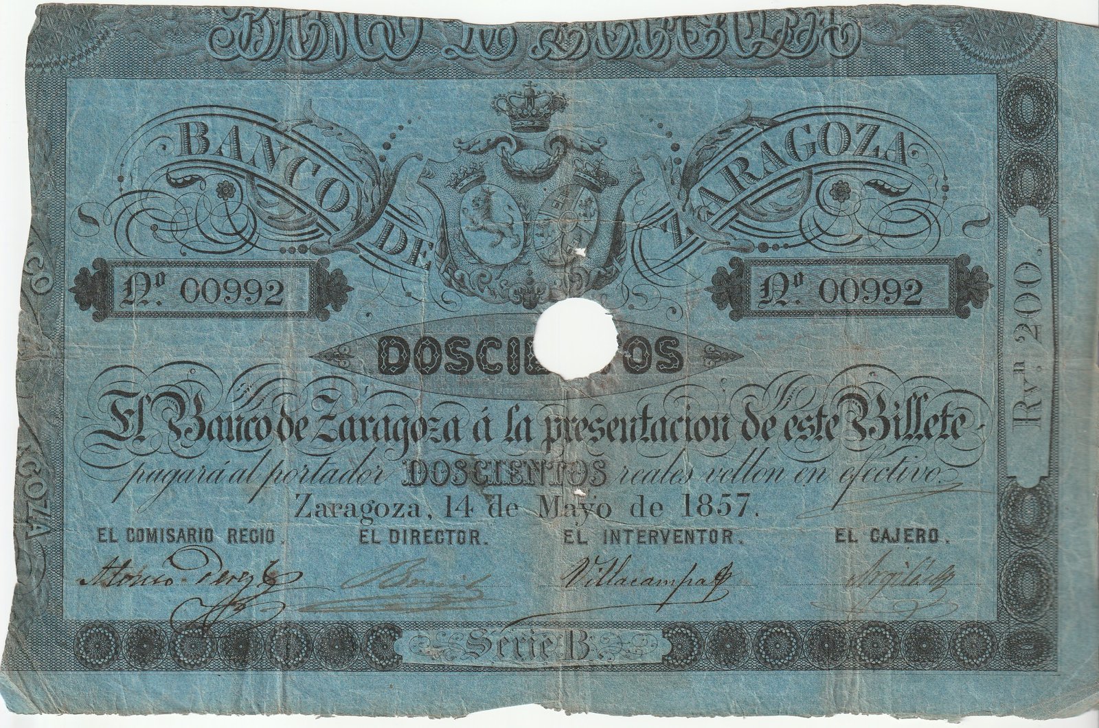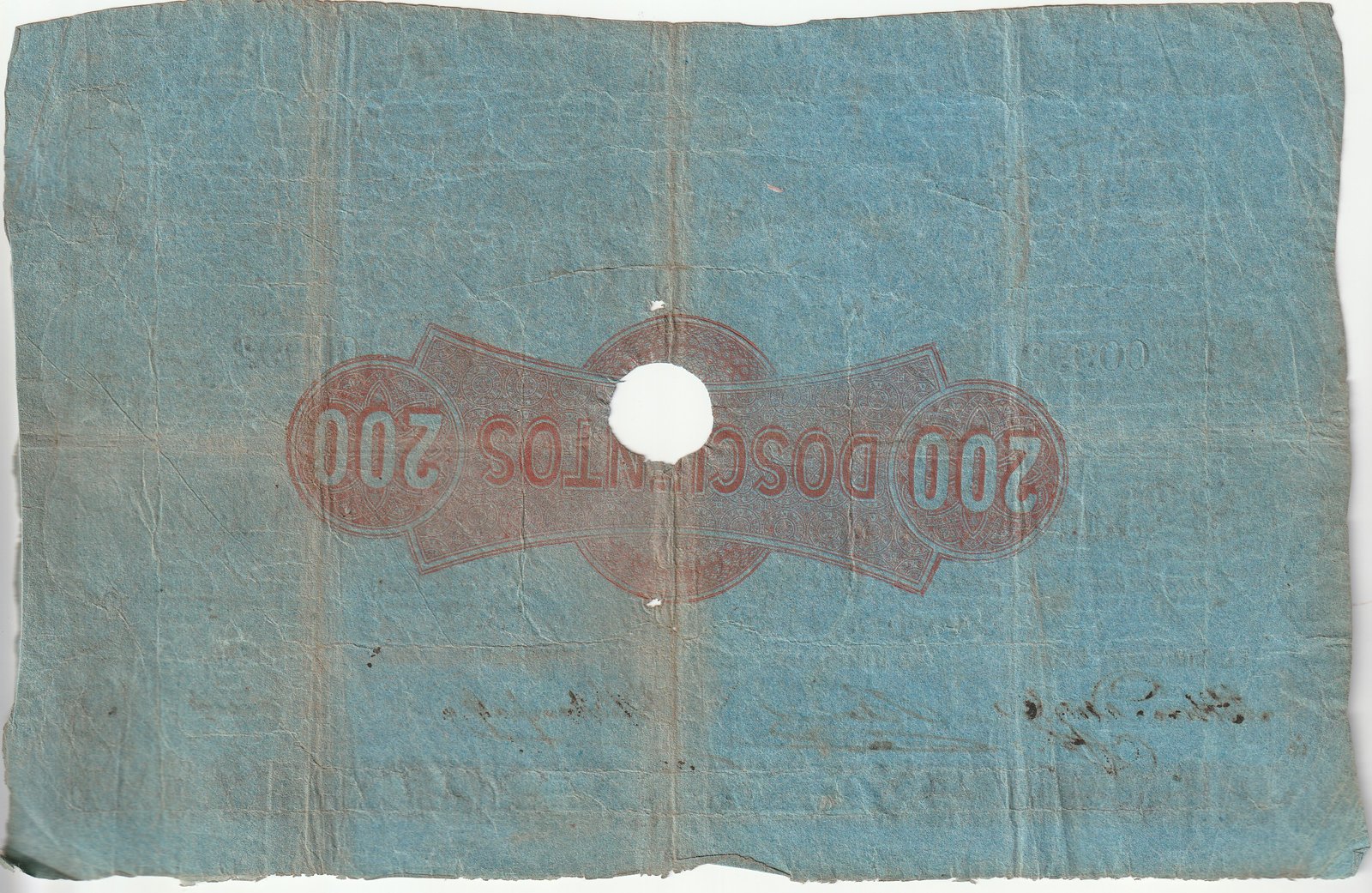 España ESP-P-S452b, 200 Reales de Vellón, Perforado, Nº 00992, Look Scand, Fine