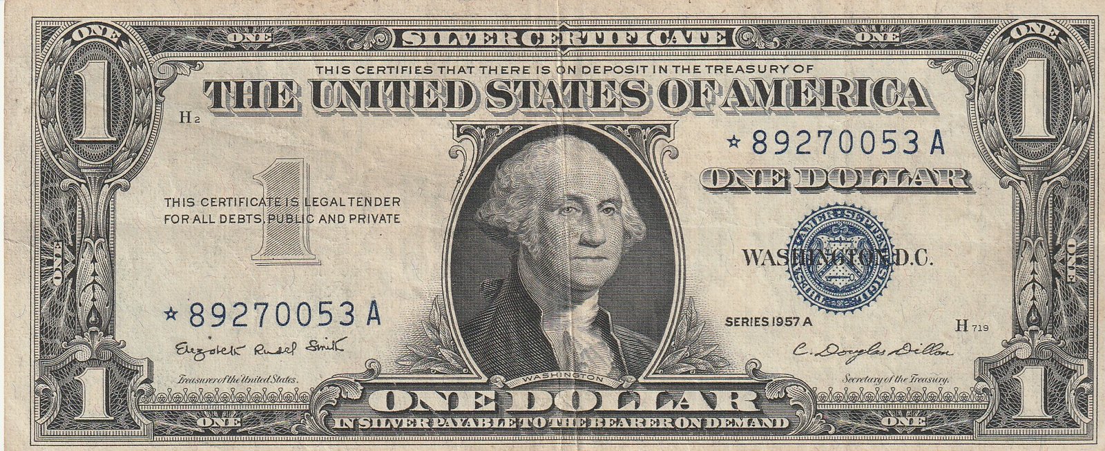Estados Unidos USA-P-419a, 1$, Nº *892740053A, Sustitución, 1957A, Look Scand, XF+