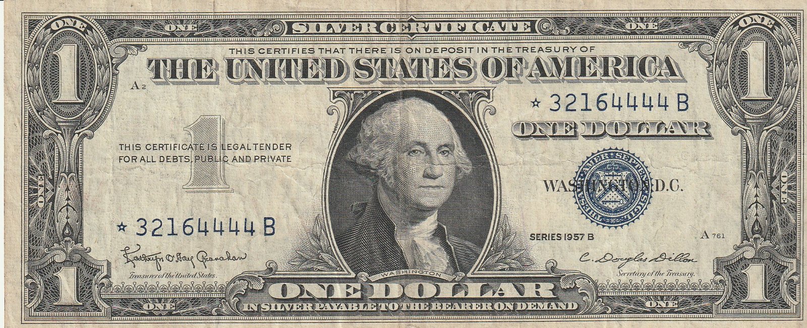 Estados Unidos USA-P-419b.2, 1$, Nº *3216444B, Sustitución, 1957A, Look Scand, Very Fine+