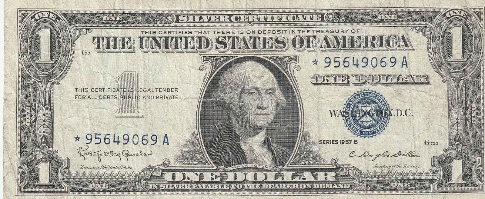 Estados Unidos USA-P-419b.2, 1$, Nº *95649069A, Sustitución, 1957A, Look Scand, Very Fine