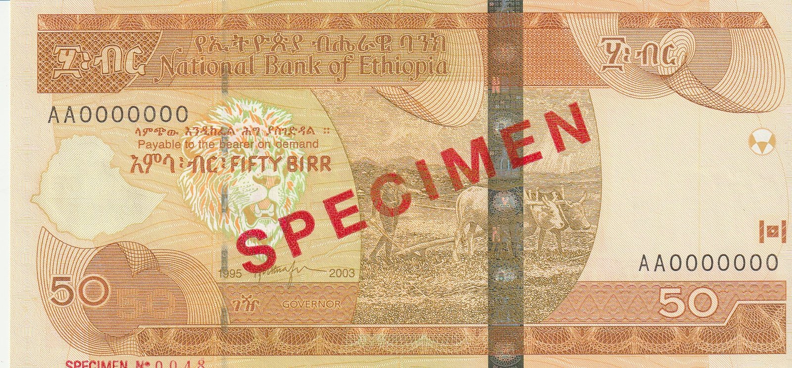 Etiopía ETH-P-51, Especimen, 50 Birr, 2003, UNC