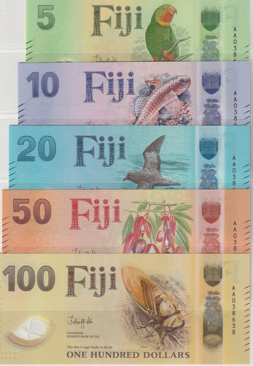 Fiji FIJ-P-W125/W129, Set 5 valores misma numeración, Polímero, UNC