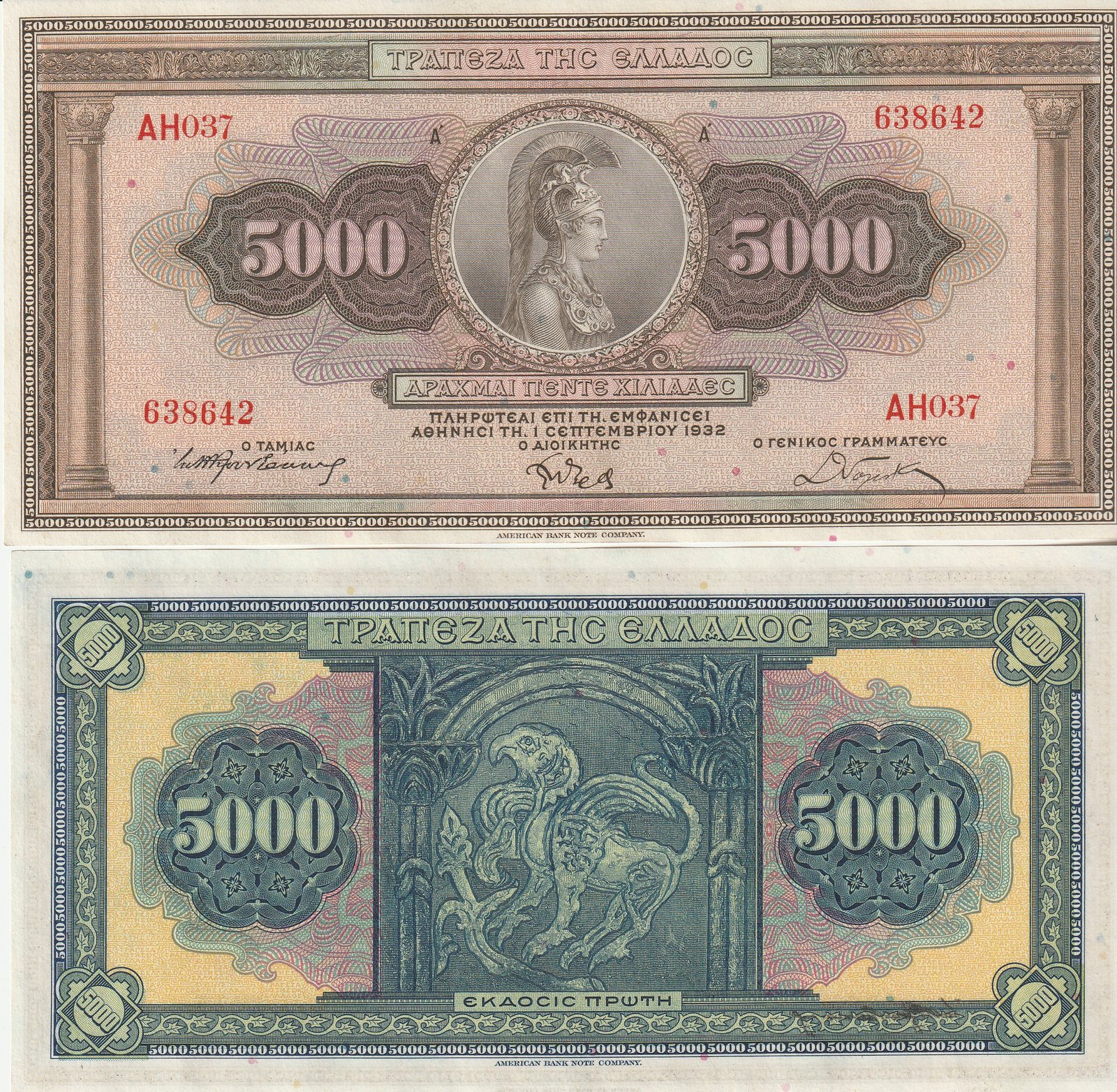Grecia GRE-P-103a(2), 5.000 Drachmai, 1932, Look Scand, UNC